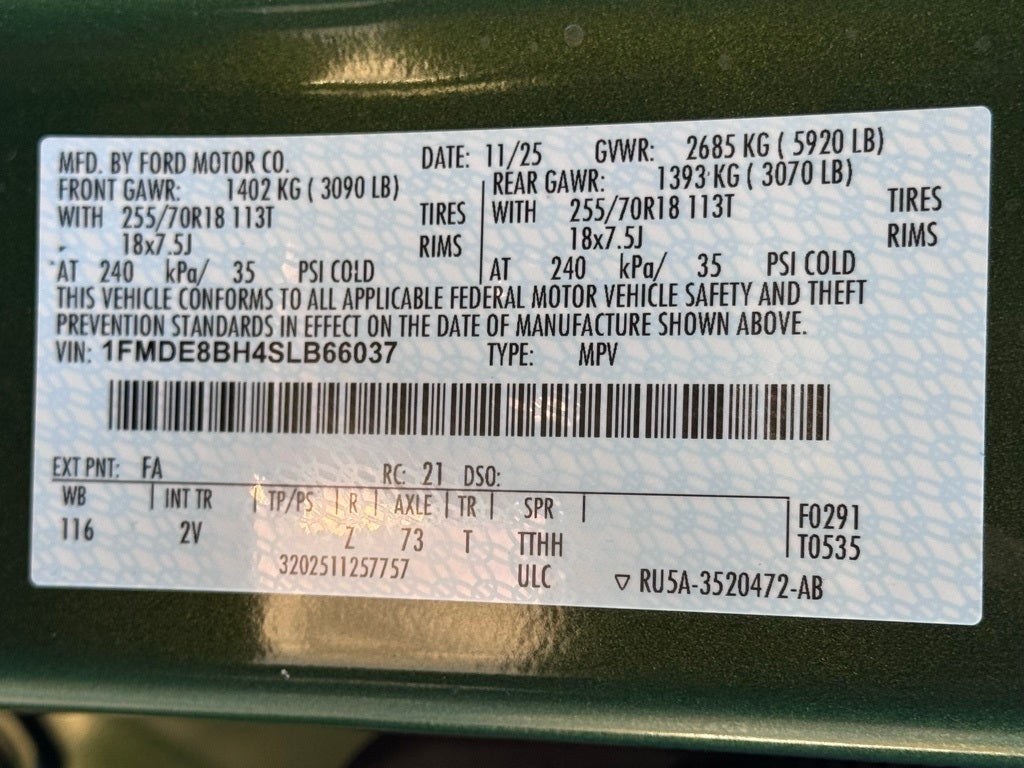 Well equipped with: Equipment Group 312A Mid Package, 18 Bright Machined Aluminum Wheels, 3.73 Axle Ratio, 4-Wheel Disc Brakes, 7 Speakers, ABS brakes, Air Conditioning, Alloy wheels, AM/FM radio: SiriusXM with 360L, AM/FM Stereo, Auto High-beam Headlights, Auto-dimming Rear-View mirror, Automatic temperature control, Brake assist, Compass, Connected Navigation, Delay-off headlights, Driver door bin, Driver vanity mirror, Dual front impact airbags, Dual front side impact airbags, Electronic Stability Control, Emergency communication system: 911 Assist, Exterior Parking Camera Rear, Front anti-roll bar, Front Bucket Seats, Front Center Armrest, Front dual zone A/C, Front fog lights, Front reading lights, Front wheel independent suspension, Fully automatic headlights, Heated door mirrors, Heated front seats, Heated Leather-Trimmed/Vinyl Bucket Seats, Heated steering wheel, Illuminated entry, Integrated roll-over protection, Internet access capable: FordPass Connect, Leather Shift Knob, Low tire pressure warning, Navigation system: Connected Navigation, Occupant sensing airbag, Outside temperature display, Overhead airbag, Overhead console, Panic alarm, Passenger door bin, Passenger vanity mirror, Power door mirrors, Power driver seat, Power passenger seat, Power steering, Power windows, Radio data system, Rear seat center armrest, Remote keyless entry, Security system, SiriusXM w/360L, Speed control, Split folding rear seat, Steering wheel mounted audio controls, SYNC 4, Tachometer, Telescoping steering wheel, Tilt steering wheel, Traction control, Trip computer, Variably intermittent wipers, and Voltmeter.