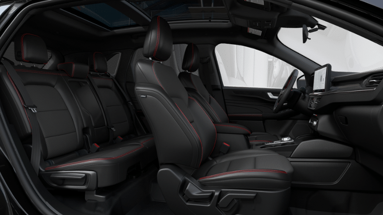 Well equipped with: Equipment Group 401A, Tech Pack #1 (Adaptive Cruise Control w/Stop-and-Go, Connected Navigation, Ford Co-Pilot360 Assist+, Intersection Assist, Predictive Speed Assist, Rear Parking Sensor, Rear-View Camera, and SYNC 4 w/Enhanced Voice Recognition), AWD, 2.91 Axle Ratio, 4-Wheel Disc Brakes, 6 Speakers, ABS brakes, Air Conditioning, Alloy wheels, AM/FM radio: SiriusXM, AM/FM Stereo, Auto High-beam Headlights, Automatic temperature control, Black Roof-Rack Side Rails, Brake assist, Bumpers: body-color, Compass, Delay-off headlights, Driver door bin, Driver vanity mirror, Dual front impact airbags, Dual front side impact airbags, Electronic Fuel Door Release, Electronic Stability Control, Emergency communication system: SYNC 4 911 Assist, FordPass Connect, Four wheel independent suspension, Front & Rear Floor Liners w/Carpet Mats, Front anti-roll bar, Front Bucket Seats, Front Center Armrest, Front dual zone A/C, Front fog lights, Front reading lights, Fully automatic headlights, Heated door mirrors, Heated front seats, Heated steering wheel, Heated Vinyl/Cloth Front Sport Contour Bucket Seats, Illuminated entry, Knee airbag, Low tire pressure warning, Neutral Towing Capability, Occupant sensing airbag, Outside temperature display, Overhead airbag, Overhead console, Panic alarm, Panoramic Vista Roof, Passenger door bin, Passenger vanity mirror, Pedestrian Alert Sounder, Power door mirrors, Power driver seat, Power Liftgate, Power steering, Power windows, Radio data system, Rear anti-roll bar, Rear reading lights, Rear seat center armrest, Rear window defroster, Rear window wiper, Remote keyless entry, Speed control, Speed-sensing steering, Speed-Sensitive Wipers, Split folding rear seat, Spoiler, Sport steering wheel, Steering wheel mounted audio controls, SYNC 4, Tachometer, Telescoping steering wheel, Tilt steering wheel, Traction control, Trip computer, Variably intermittent wipers, Wheels: 18 Rock Metallic Painted Aluminum, and Wheels: 19 Machined-Face Ebony-Painted Aluminum.