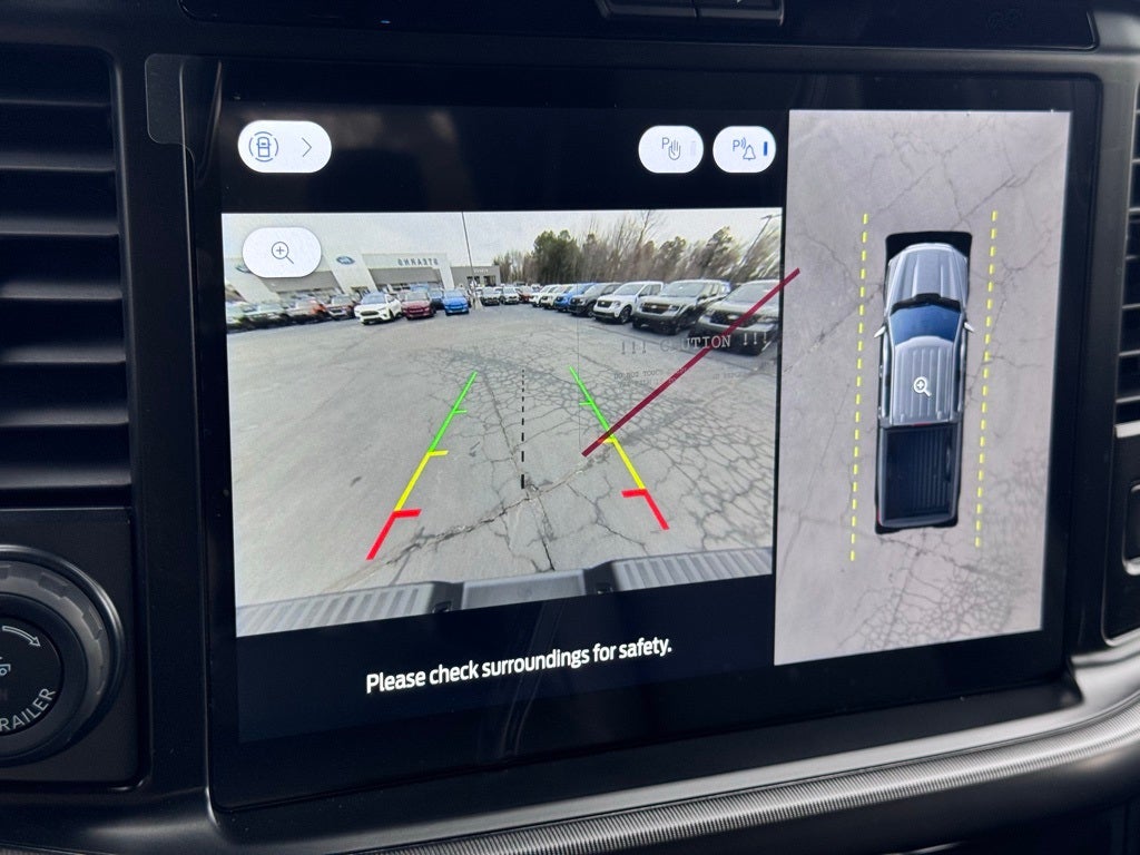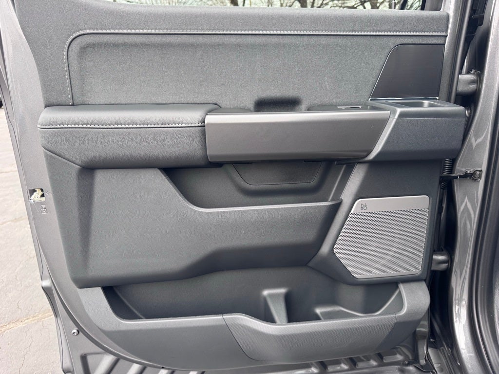 Well equipped with: Equipment Group 501A Mid (ActiveX Trimmed Bucket Seats, Illuminated Driver and Passenger Visors, Power-Adjustable Pedals with Memory, Power-Sliding Rear Window, Radio: B&O Sound System by Bang and Olufsen, SYNC 4 with Enhanced Voice Recognition, and Wheels: 20 Chrome-Like PVD), Ford Connectivity Package (1-Year Included), FX4 Off-Road Package (4x4 FX4 Off-Road Bodyside Decal, Hill Descent Control, Monotube Rear Shocks, Off-Road Tuned Front Shock Absorbers, Rock Crawl Mode, and Tray Style Floor Liner Without Carpet Mats), Internet access capable: 5G Modem - Ford Connectivity Package, Lariat Black Appearance Package (Black Exterior Badging, Black Grille, Black Taillamp Bezels, Body-Color Front and Rear Bumpers, Dark Interior Appliques, Gray Box Side Decal, and Matte Black Tailgate F-150 Decal), 4WD, 4-Wheel Disc Brakes, 8 Speakers, ABS brakes, Air Conditioning, Alloy wheels, AM/FM radio: SiriusXM with 360L, Auto High-beam Headlights, Auto-dimming door mirrors, Auto-dimming Rear-View mirror, Automatic temperature control, BlueCruise (equipment + 1 Year + 90-Day Plan), Brake assist, Bumpers: chrome, Chrome wheels, Compass, Delay-off headlights, Driver door bin, Driver vanity mirror, Dual front impact airbags, Dual front side impact airbags, Electronic Stability Control, Emergency communication system: SYNC 4 911 Assist, Front anti-roll bar, Front Bucket Seats, Front Center Armrest, Front dual zone A/C, Front fog lights, Front reading lights, Front wheel independent suspension, Fully automatic headlights, Garage door transmitter, Heated door mirrors, Heated front seats, Heated steering wheel, Illuminated entry, Low tire pressure warning, Memory seat, Navigation system: Connected Navigation, Occupant sensing airbag, Outside temperature display, Overhead airbag, Overhead console, Panic alarm, Passenger door bin, Passenger vanity mirror, Power door mirrors, Power driver seat, Power passenger seat, Power steering, Power windows, Radio data system, Rain sensing wipers, Rear reading lights, Rear seat center armrest, Rear step bumper, Rear window defroster, Remote keyless entry, Security system, Speed control, Split folding rear seat, Steering wheel mounted audio controls, Tachometer, Telescoping steering wheel, Tilt steering wheel, Tough Bed Spray-in Bedliner, Traction control, Trip computer, Turn signal indicator mirrors, Variably intermittent wipers, Ventilated front seats, and Wheels: 18 Chrome-Like PVD.