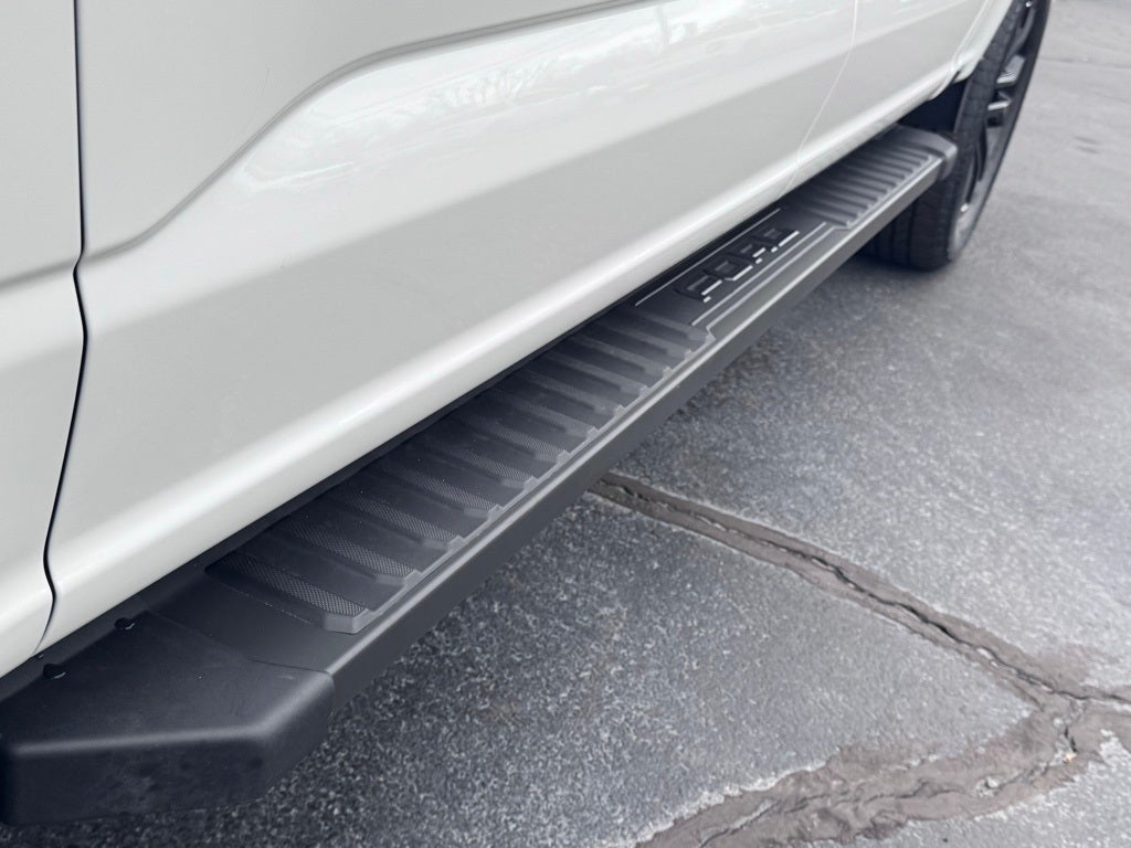 Well equipped with: Equipment Group 501A Mid (ActiveX Trimmed Bucket Seats, Illuminated Driver and Passenger Visors, Power-Adjustable Pedals with Memory, Power-Sliding Rear Window, Radio: B&O Sound System by Bang and Olufsen, SYNC 4 with Enhanced Voice Recognition, and Wheels: 20 Chrome-Like PVD), Ford Connectivity Package (1-Year Included), FX4 Off-Road Package (4x4 FX4 Off-Road Bodyside Decal, Hill Descent Control, Monotube Rear Shocks, Off-Road Tuned Front Shock Absorbers, Rock Crawl Mode, and Tray Style Floor Liner Without Carpet Mats), Internet access capable: 5G Modem - Ford Connectivity Package, Lariat Black Appearance Package (Black Exterior Badging, Black Grille, Black Taillamp Bezels, Body-Color Front and Rear Bumpers, Dark Interior Appliques, Gray Box Side Decal, and Matte Black Tailgate F-150 Decal), 4WD, 4-Wheel Disc Brakes, 8 Speakers, ABS brakes, Air Conditioning, Alloy wheels, AM/FM radio: SiriusXM with 360L, Auto High-beam Headlights, Auto-dimming door mirrors, Auto-dimming Rear-View mirror, Automatic temperature control, Brake assist, Bumpers: chrome, Chrome wheels, Compass, Delay-off headlights, Driver door bin, Driver vanity mirror, Dual front impact airbags, Dual front side impact airbags, Electronic Stability Control, Emergency communication system: SYNC 4 911 Assist, Front anti-roll bar, Front Bucket Seats, Front Center Armrest, Front dual zone A/C, Front fog lights, Front reading lights, Front wheel independent suspension, Fully automatic headlights, Garage door transmitter, Heated door mirrors, Heated front seats, Heated steering wheel, Illuminated entry, Low tire pressure warning, Memory seat, Navigation system: Connected Navigation, Occupant sensing airbag, Outside temperature display, Overhead airbag, Overhead console, Panic alarm, Passenger door bin, Passenger vanity mirror, Power door mirrors, Power driver seat, Power passenger seat, Power steering, Power windows, Radio data system, Rain sensing wipers, Rear reading lights, Rear seat center armrest, Rear step bumper, Rear window defroster, Remote keyless entry, Security system, Speed control, Split folding rear seat, Steering wheel mounted audio controls, Tachometer, Telescoping steering wheel, Tilt steering wheel, Traction control, Trip computer, Turn signal indicator mirrors, Variably intermittent wipers, Ventilated front seats, and Wheels: 18 Chrome-Like PVD.